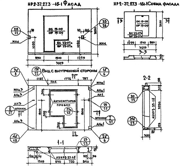 НР2-37.27.3-1бл-1 Наружная стеновая панель рядовая по Серии 1.132-1.