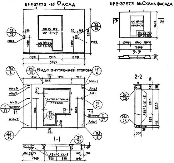 НР2-37.27.3-1бл Наружная стеновая панель рядовая по Серии 1.132-1.